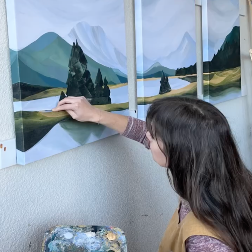 Fine art giclée print from an original acrylic + gouache triptych painting. Inspired by the Three Sisters mountains in Central Oregon.
